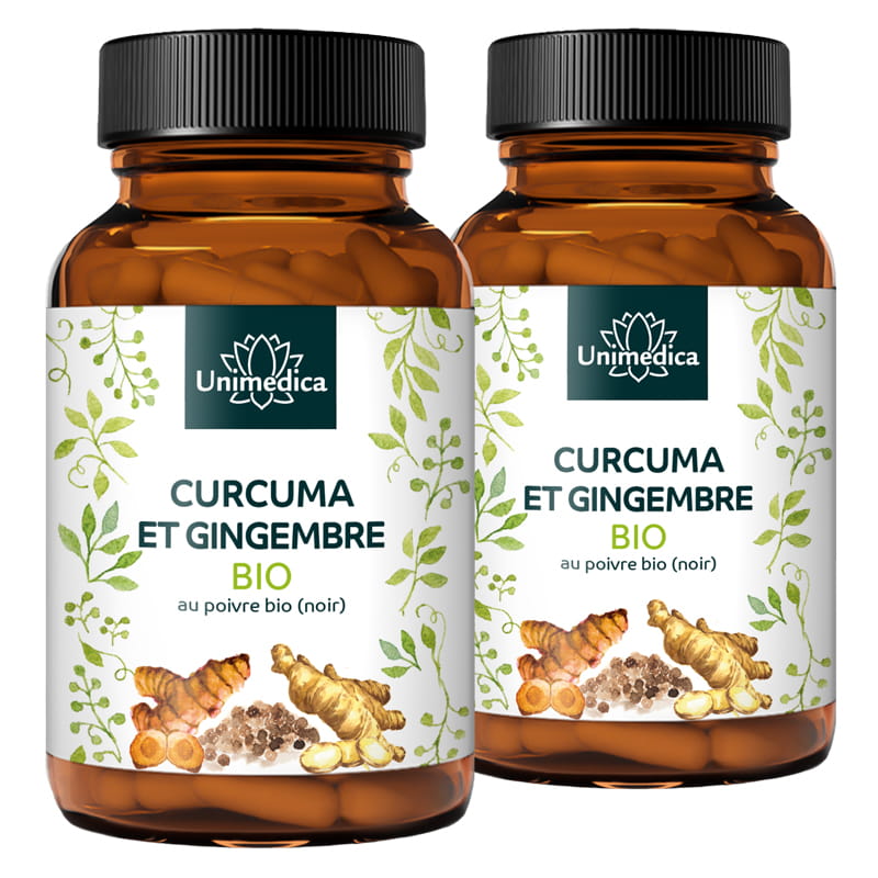 Ähnlich wie die beliebte „Goldene Milch", vereinen die Bio Kurkuma & Ingwer mit Bio Pfeffer (schwarz) Kapseln von Unimedica die wertvollen Inhaltsstoffe der exotischen Gewürze Kurkuma, Ingwer und schwarzer Pfeffer.