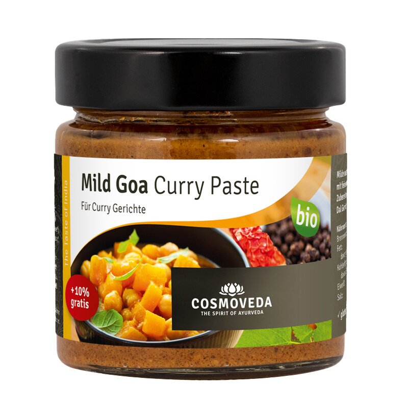 Cosmoveda's Mild Goa Curry Paste is a mild curry paste from the Goa region on India’s west coast, made with delicate spices, tomatoes and tamarind. Ideal for preparing flavourful vegetable curries and dal.