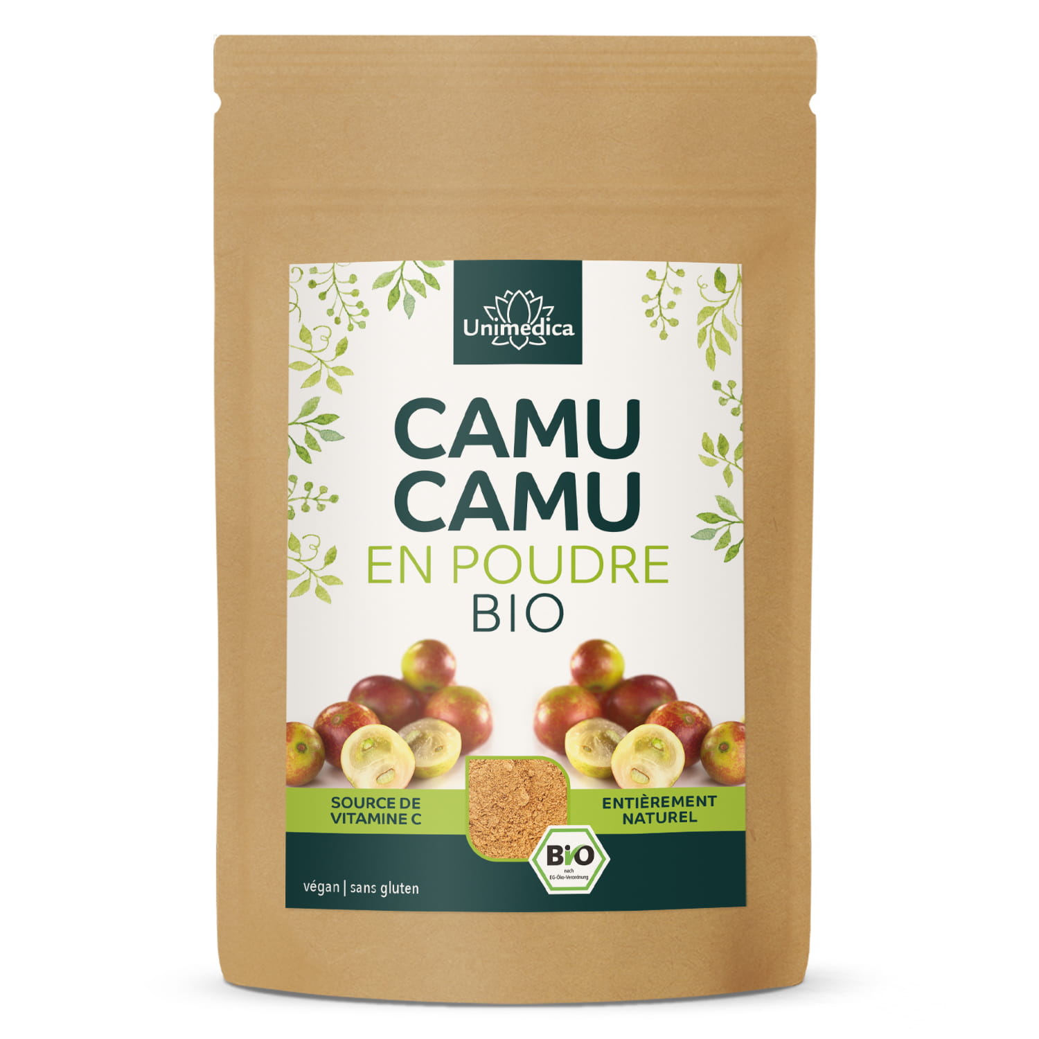 Organic Camu Camu powder from Unimedica is made from Camu Camu berries. The berries are gently dried at low temperatures after harvest to preserve as many of their constituents as possible. In addition to their impressive natural vitamin C content, the small red, fruity-sour berries contain numerous other valuable constituents that support the effectiveness of vitamin C in its natural matrix. The berries have a very high natural vitamin C content. For this reason Camu Camu is considered a superfood. Vitamin C supports the immune system and many other bodily functions.