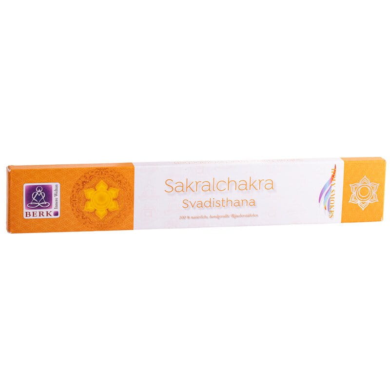 The sacral chakra incense sticks support the sacral chakra, which strengthens life force and creativity. With myrrh, styrax and lemon balm. Burn time approximately 30–60 minutes.