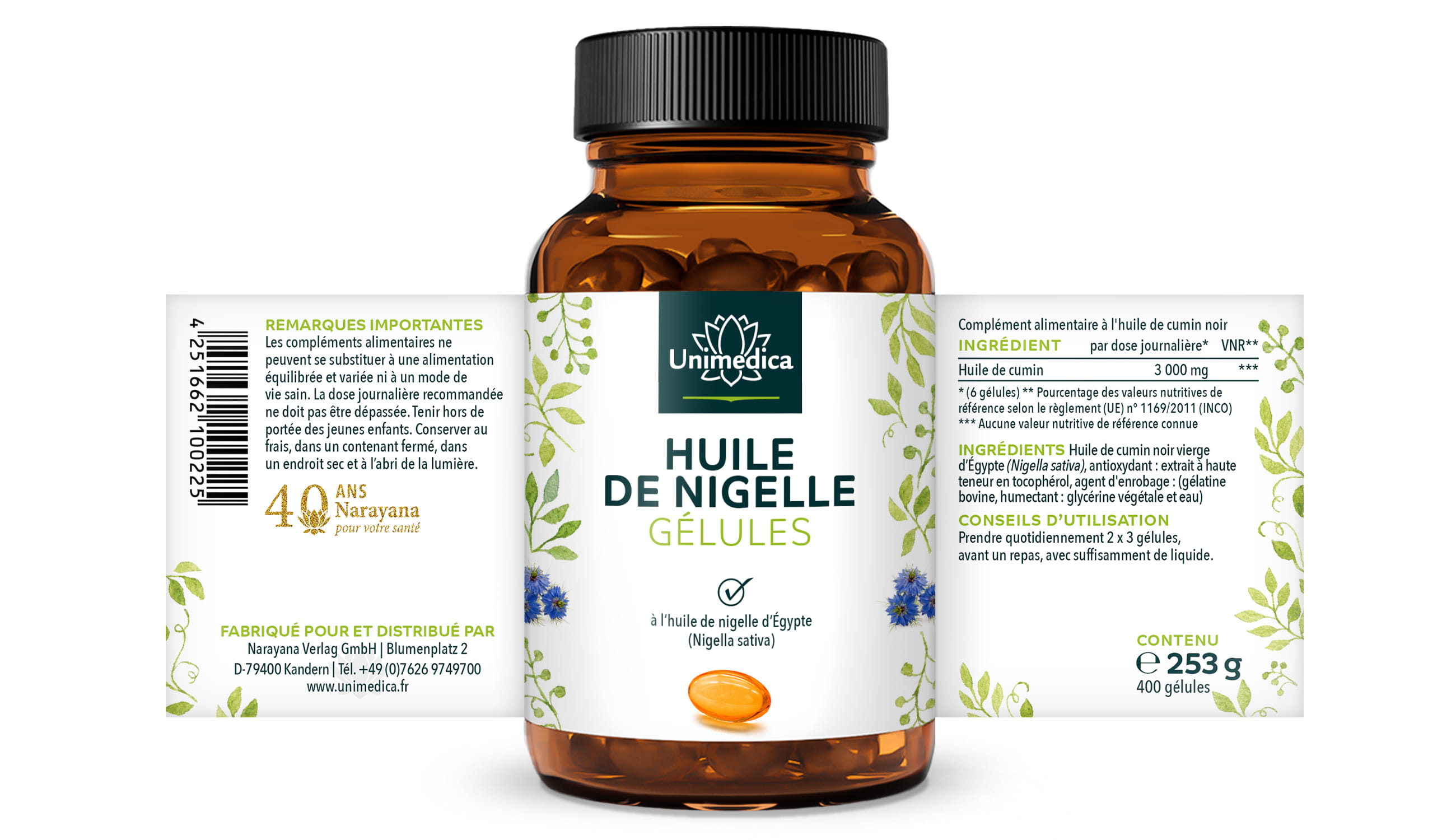 Unimedica’s black seed oil capsules are, in accordance with legal requirements, free from preservatives and additionally contain no additives such as flavours, colourings, stabilisers, anti-caking agents such as magnesium stearate, are non-GM as well as lactose-free and gluten-free.