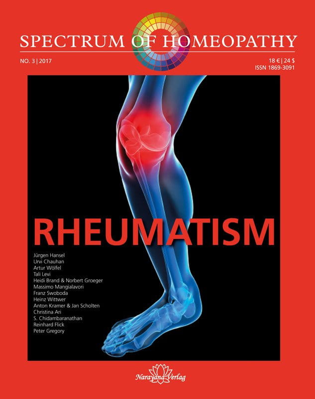 Rheumatism is a widespread and multifaceted disease. Rheumatic disorders include around 240 different illnesses with varying symptom profiles and treatment approaches. The number of homeopathic remedies that can be used to treat rheumatism is even greater. We have selected a number of remedies to highlight certain trends, while at the same time presenting various homeopathic approaches to treating patients with rheumatism.